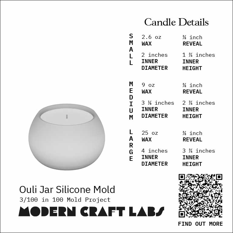 Ouli Jar is a plump round jar and creates a sturdy casting. Use this silicone mold to create a candle jar or planter.